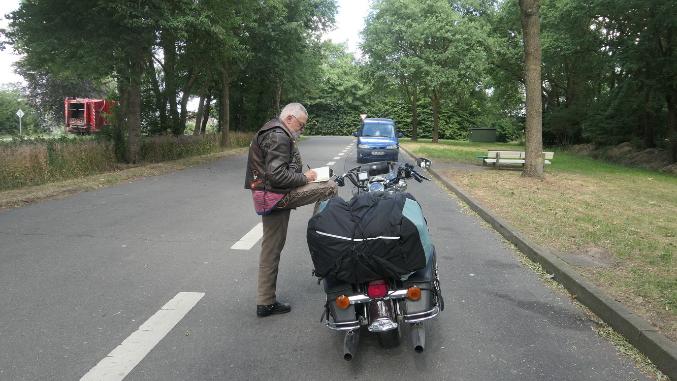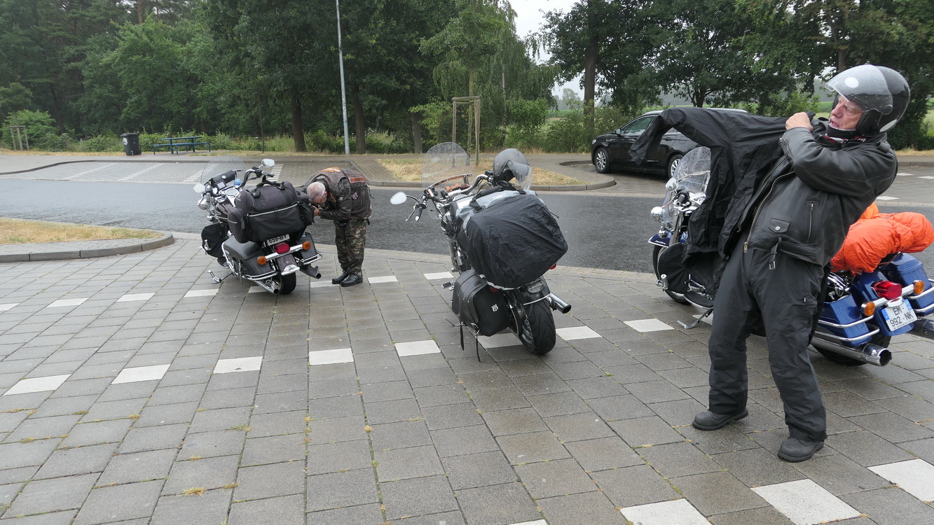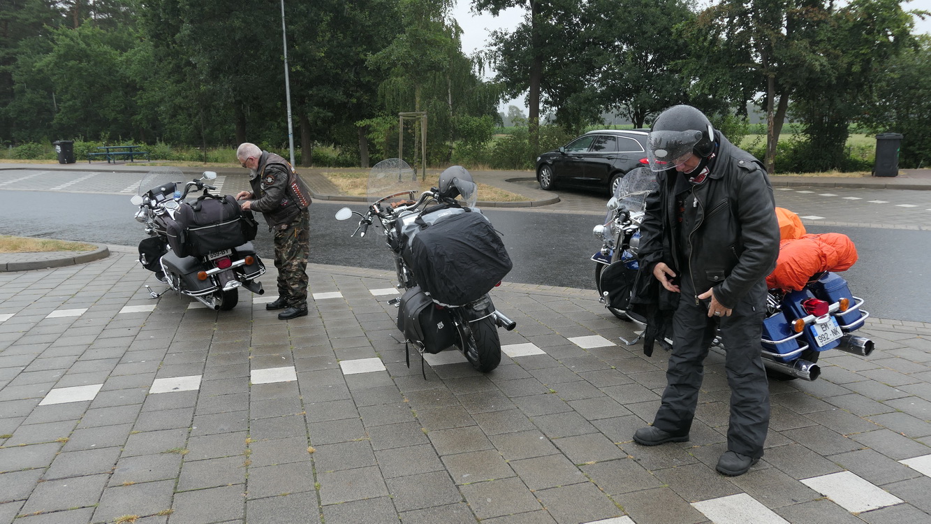 Départ à 8h45 : on est bon!. Malgré une météo incertaine, on décide de ne pas s'équiper pluie. Erreur grave, on est obligé de faire un arrêt à la sortie d'Osnabrück pour enfiler les vêtements de pluie