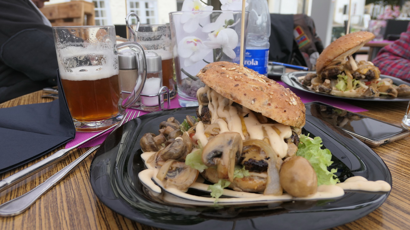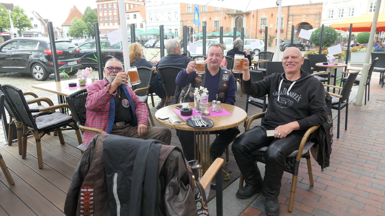 Arrêt déjeuner à Glükstadt, petite bourgade très sympathique et bien accueillante, on trouve un resto sur la place avec nos bécanes en vue