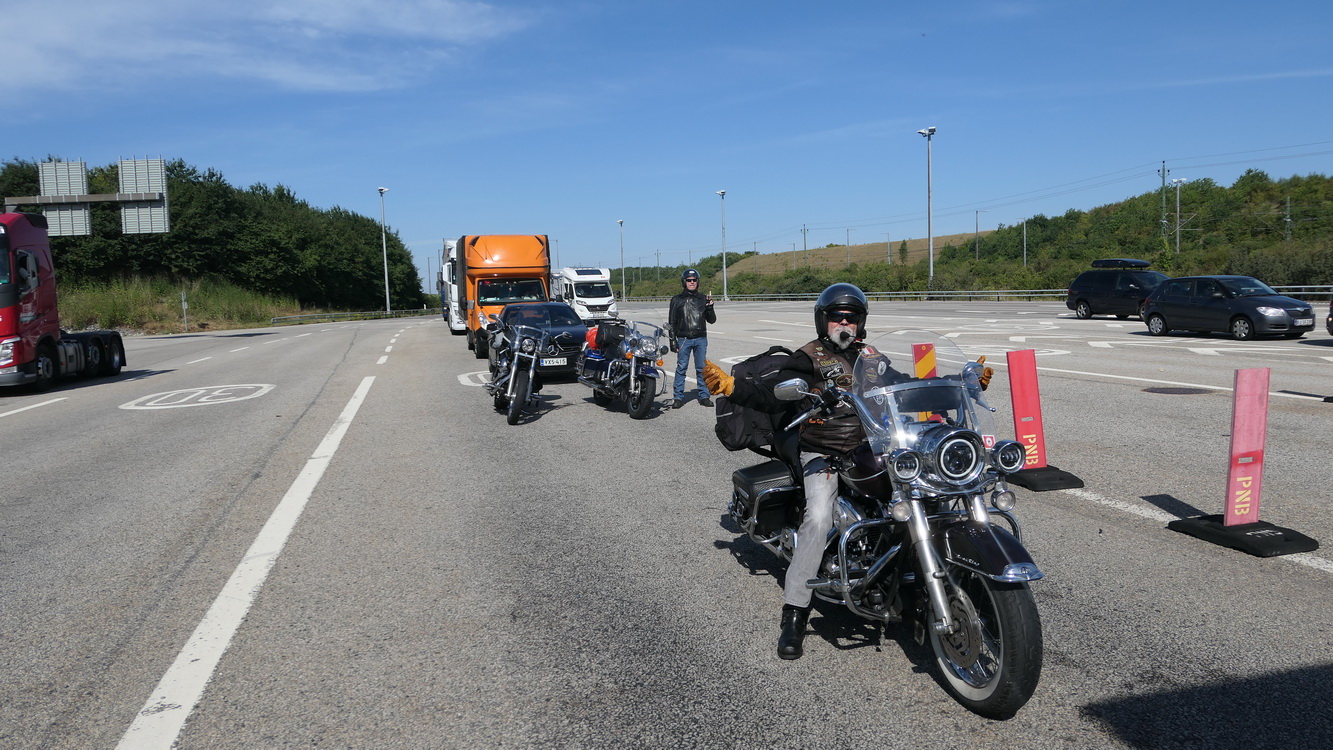 Nous poursuivons sur les petites routes mais les vitesses sont très basses ( 60km/h et moins dans les villages), nous voyons au loin un nuage menaçant et nous décidons donc de mettre nos équipements de pluie par précaution. Finalement nous n'aurons droit qu'à quelques gouttes.
