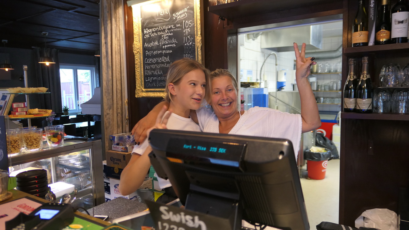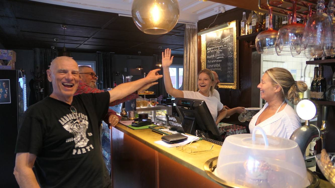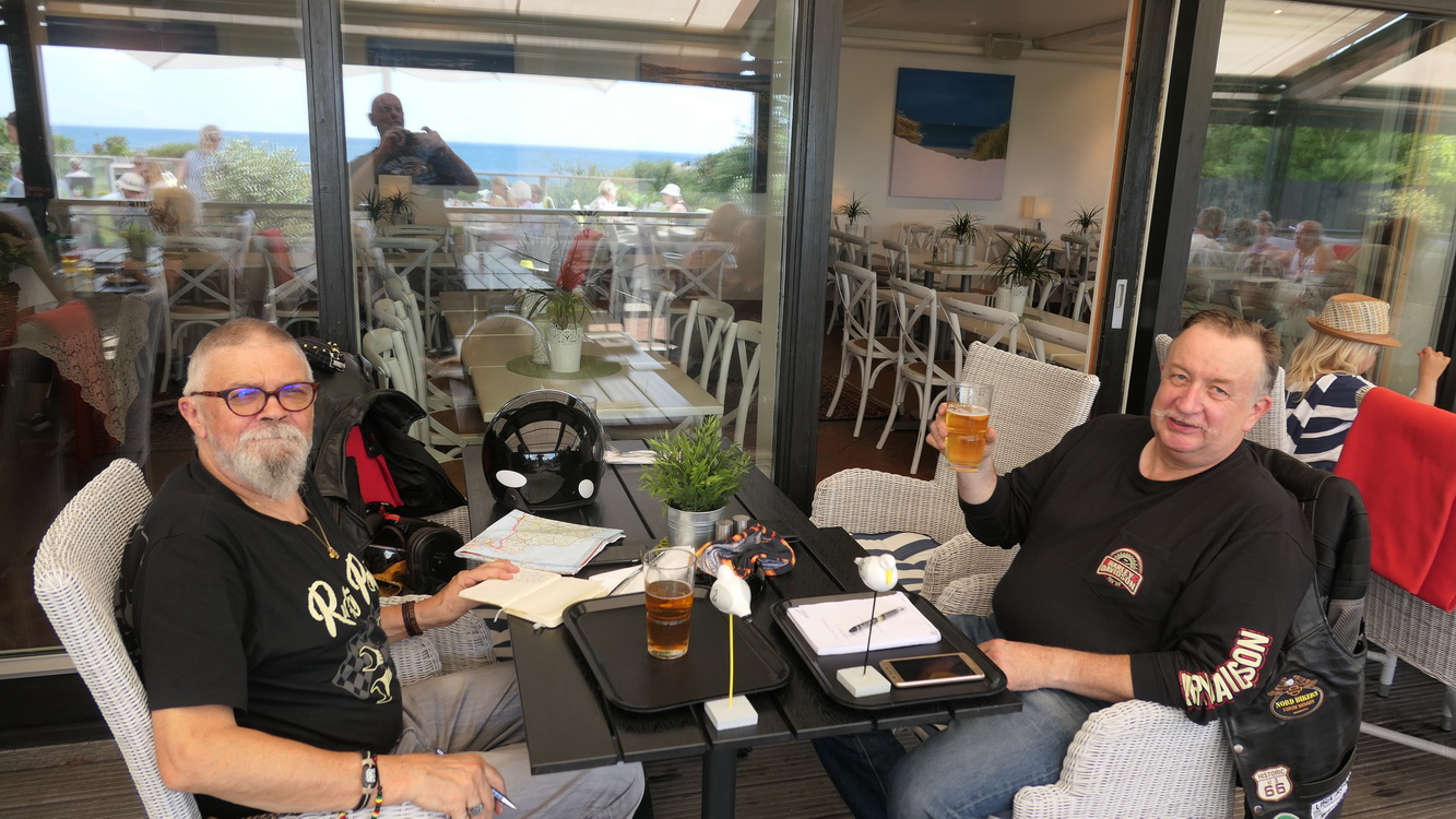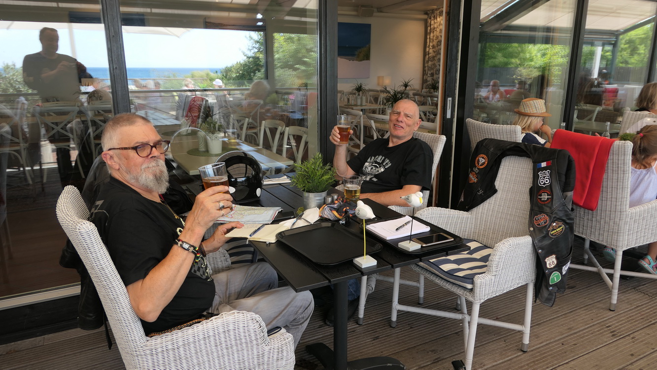 Après deux heures d'autoroute ( il a peu de nationale en Suède), nous parvenons à emprunter les petites routes le long de la côte et trouvons un restaurant au bord de la mer