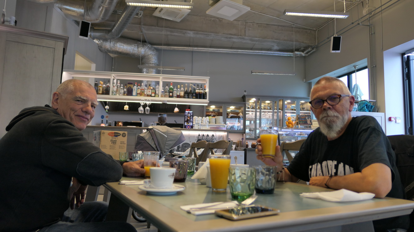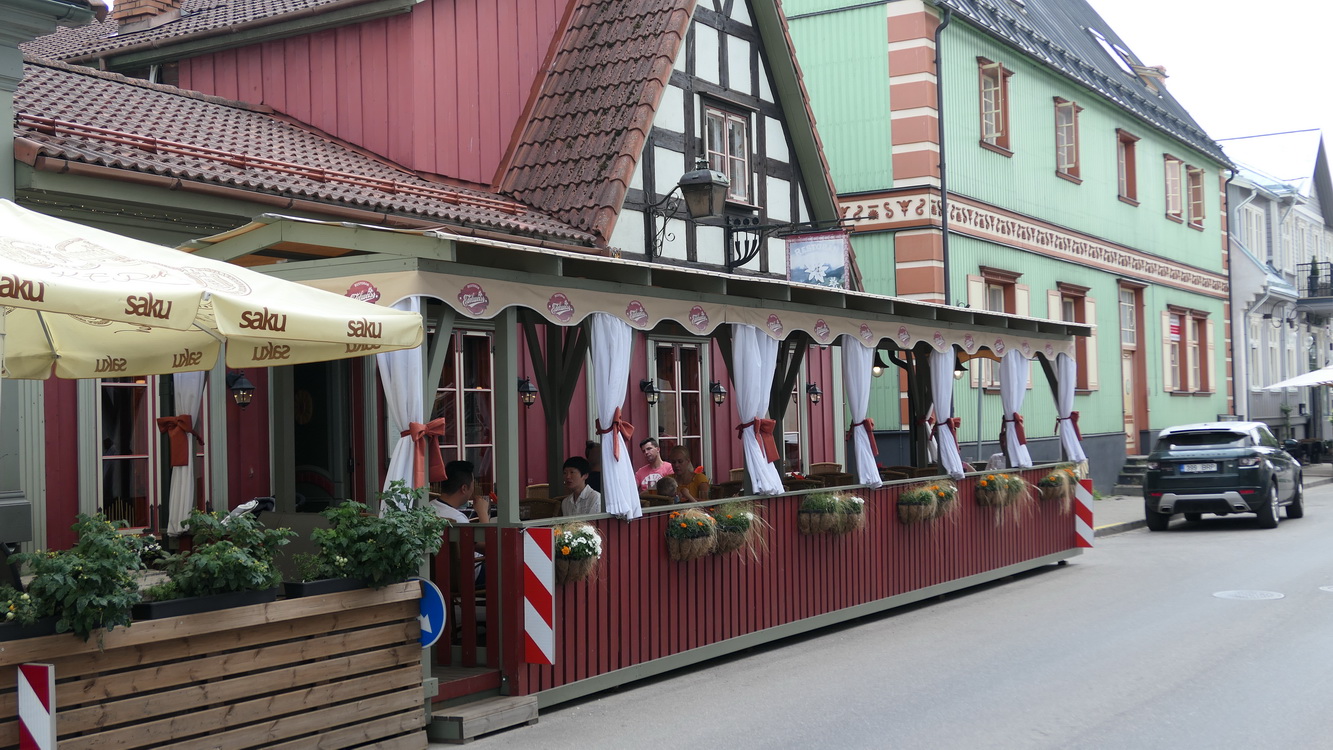 Nous nous arrêtons à Parlü pour déjeuner, ce sera sans alcool car le taux autorisé est de 0,02/l, autant dire rien....on boira donc de l'eau citronnée!