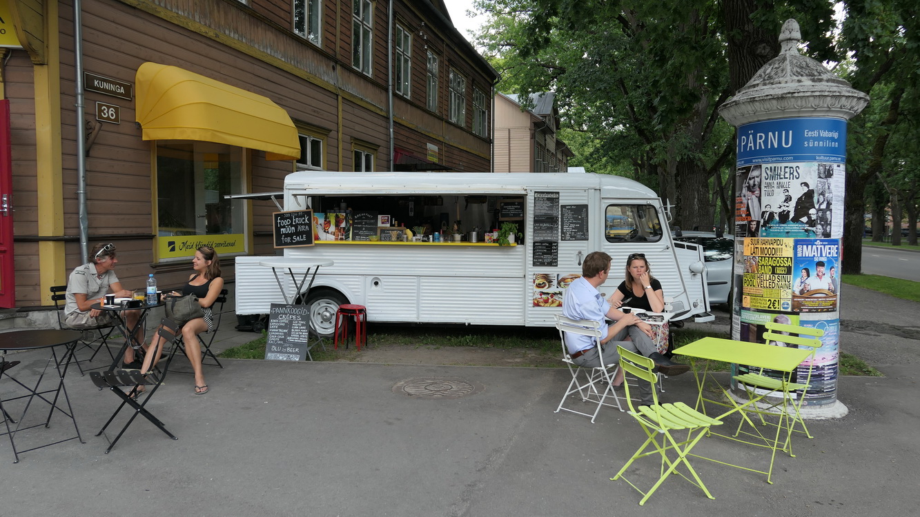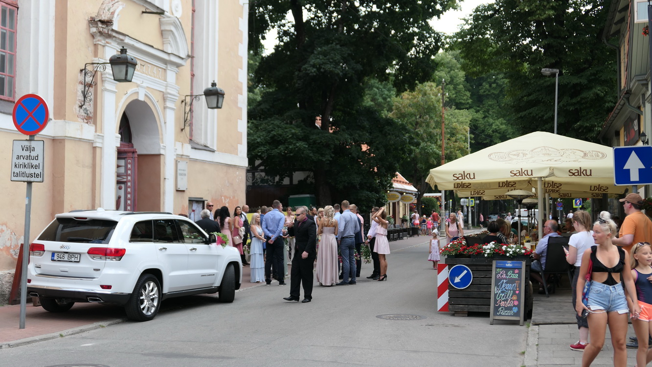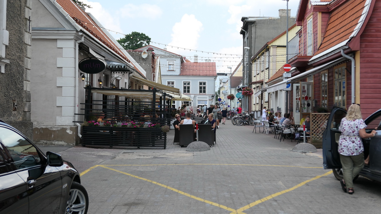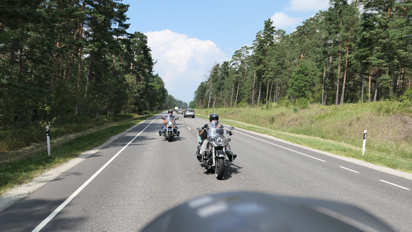 Mauvaise nouvelle, il commence à pleuvoir, on partira sous la pluie et on mettra 1h pour sortir de Tallinn , le soleil revient très vite et on enlève nos vêtements de protection.
