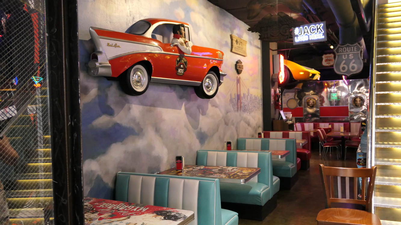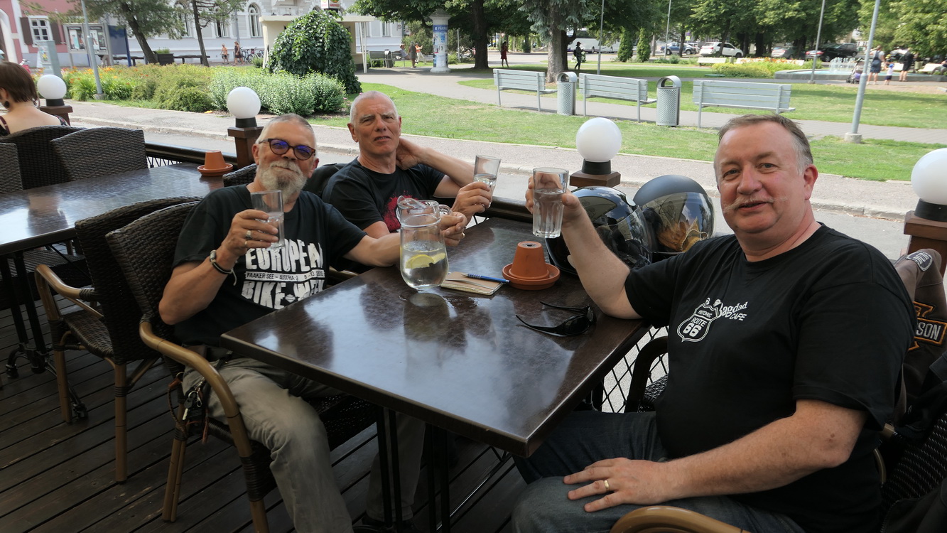 Visite de la ville et diner au club house Harley sur la place à côté de la boutique...