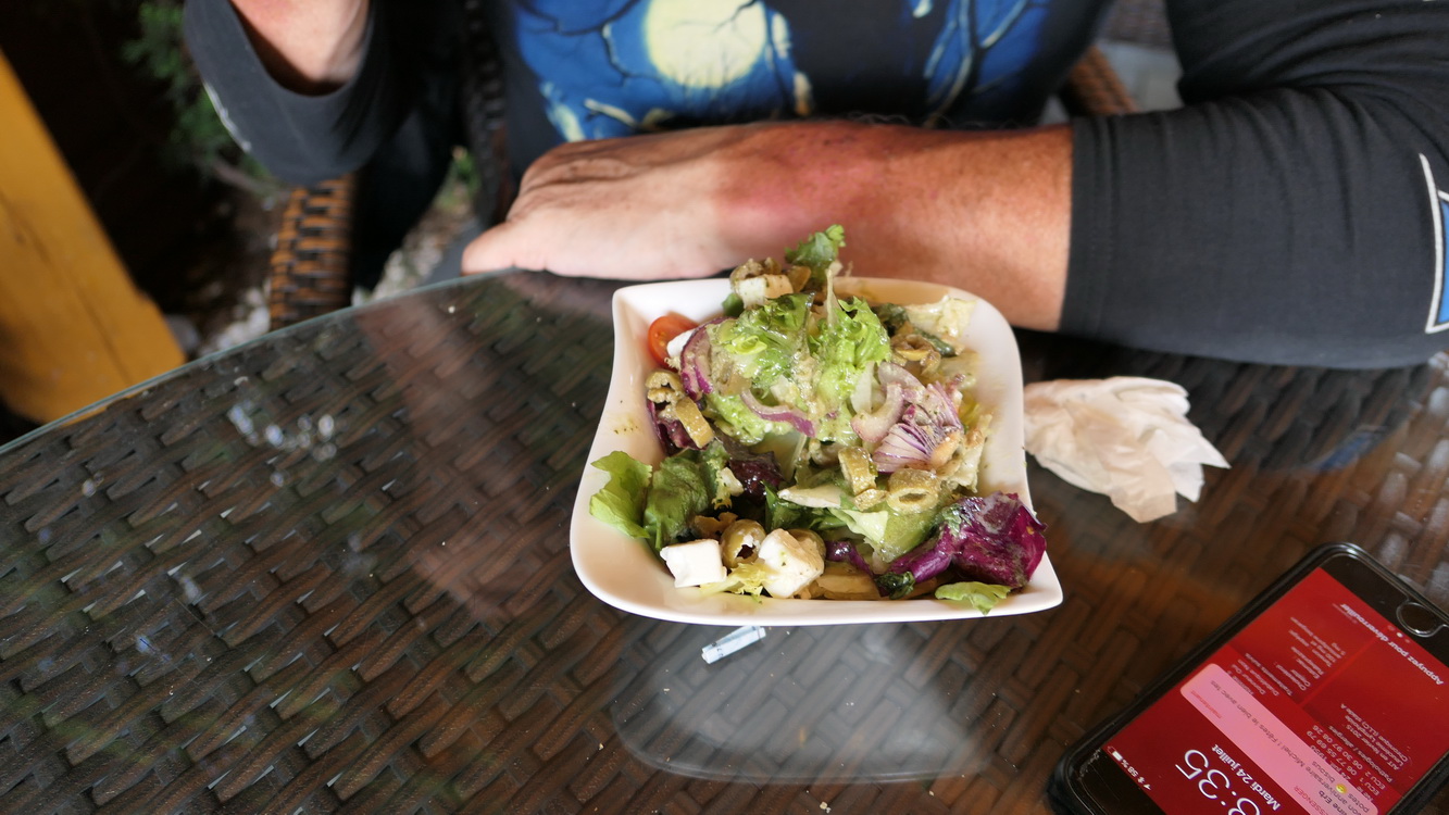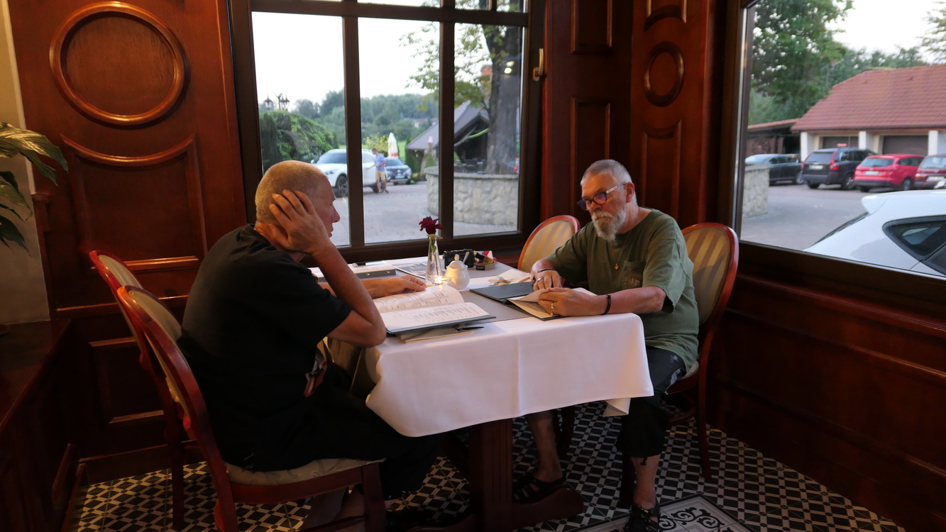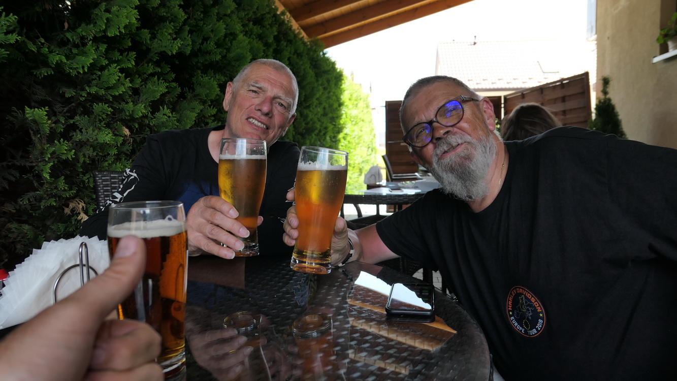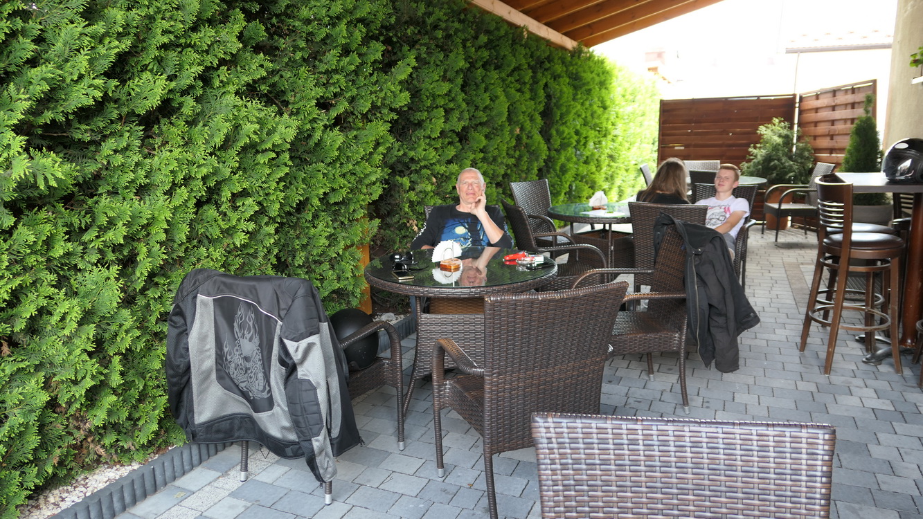 Arrêt dans un village pour déjeuner, nous demandons un restaurant à un couple qui nous y emmène à pied (5 minutes), nous reprenons les motos pour nous stationner devant. Nous y rencontrerons un français de Arles qui vient en vacances dans le pays de son épouse