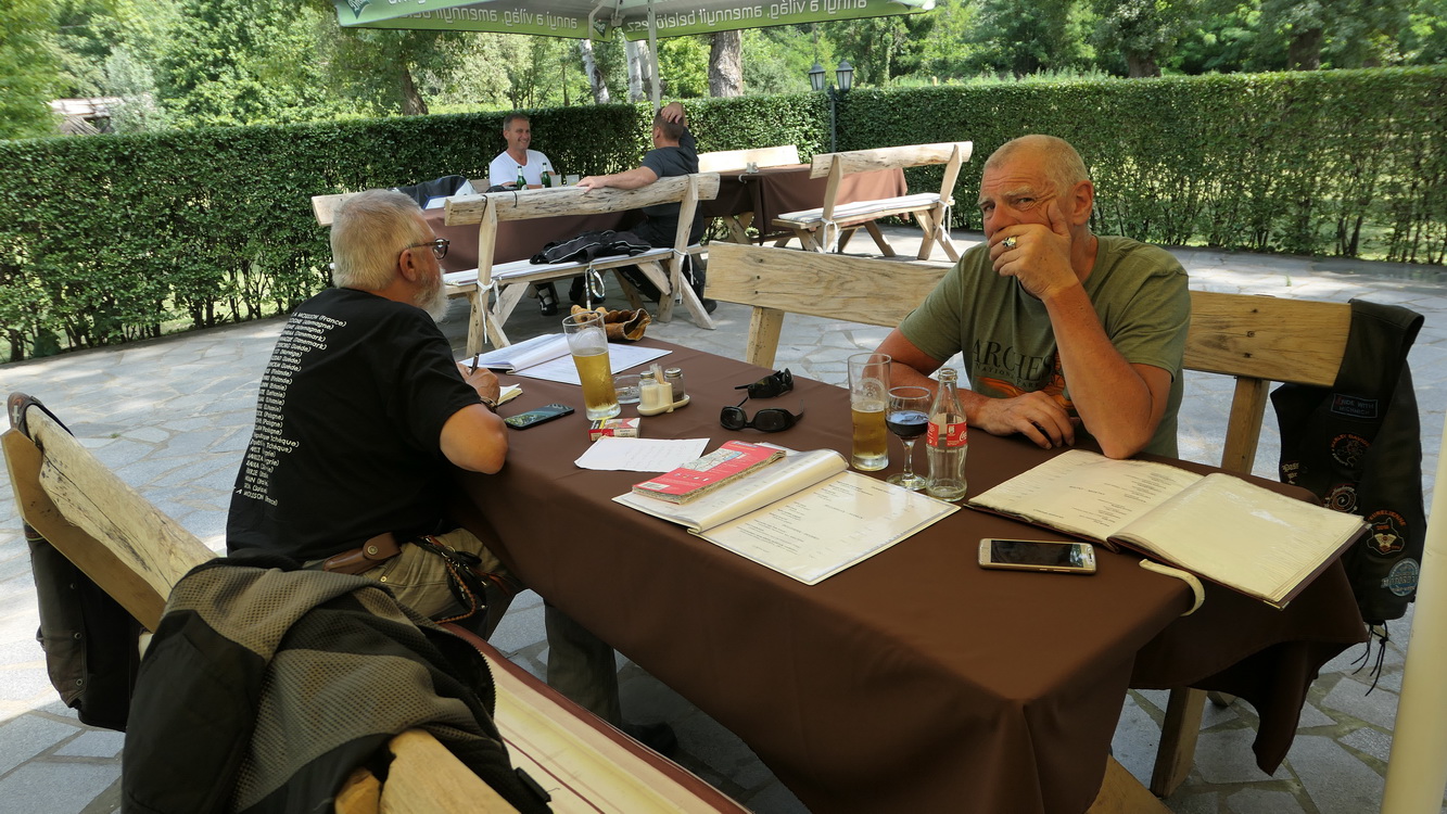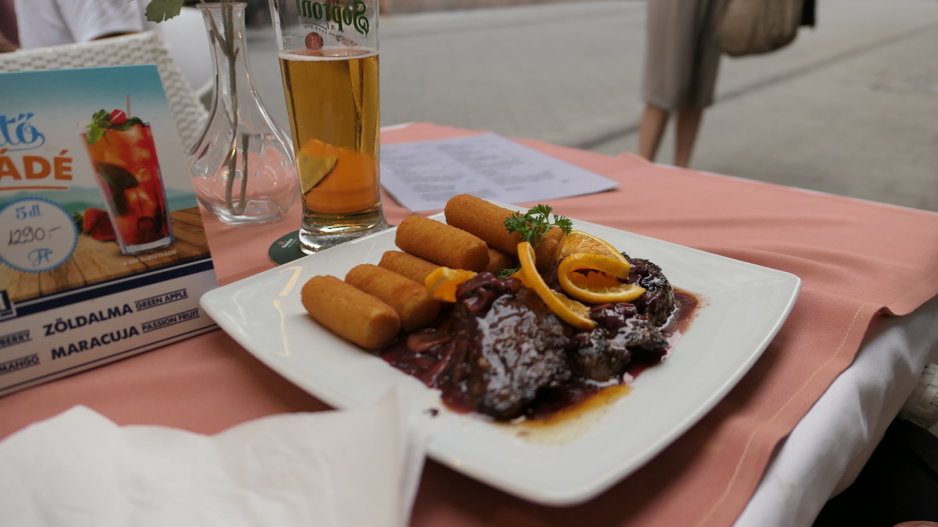 Arrêt déjeuner dans un petit restaurant local, les menus sont en hongrois uniquement et personne ne parle anglais, encore moins le français, juste quelques mots d'allemand! Ted s'est retrouvé avec une assiette de cornichon en plat principal! Il a commandé une soupe locale qu'il a appréciée mais qui lui a donné la courante dans l'après midi! Mais l'endroit était joli