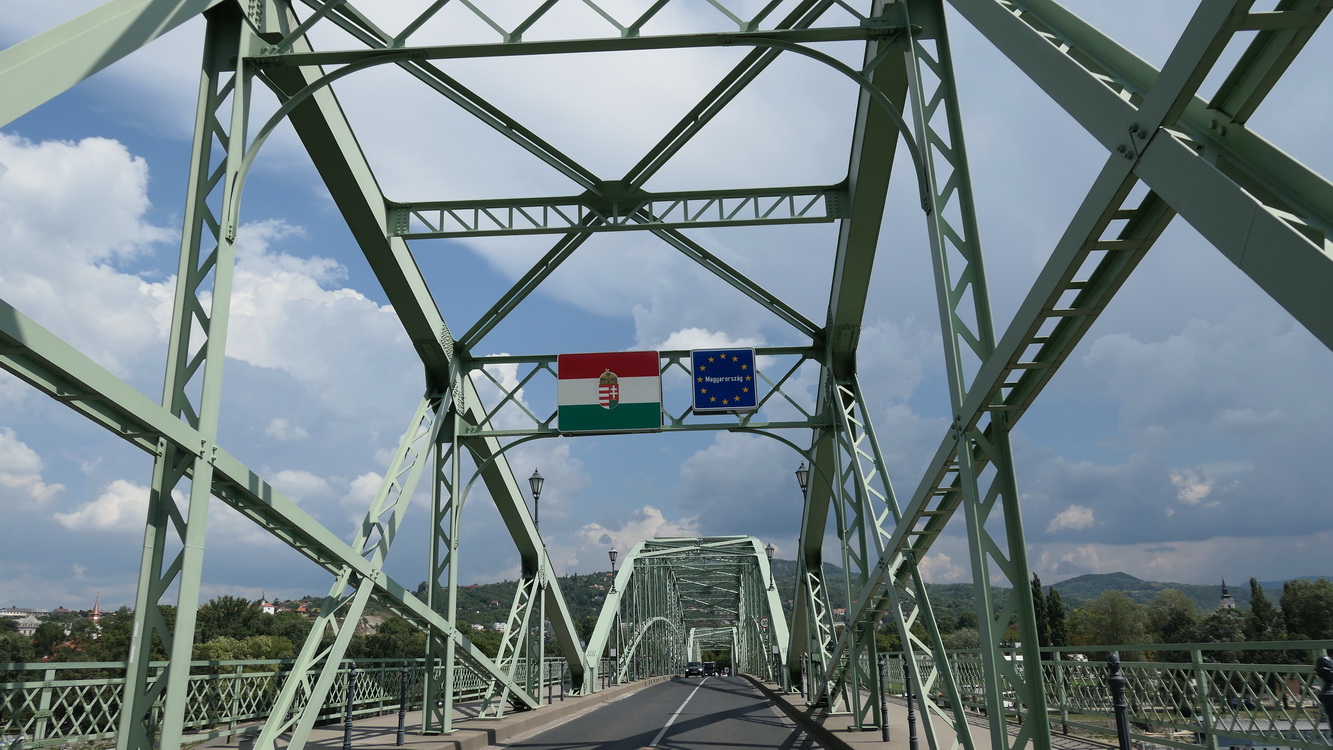 Nous traversons le pont et donc le danube pour changer de pays et se retrouver en slovaquie pour prendre la balisique de l'autre rive