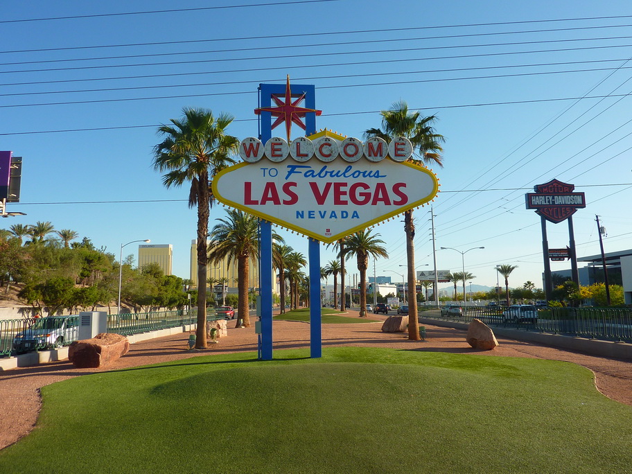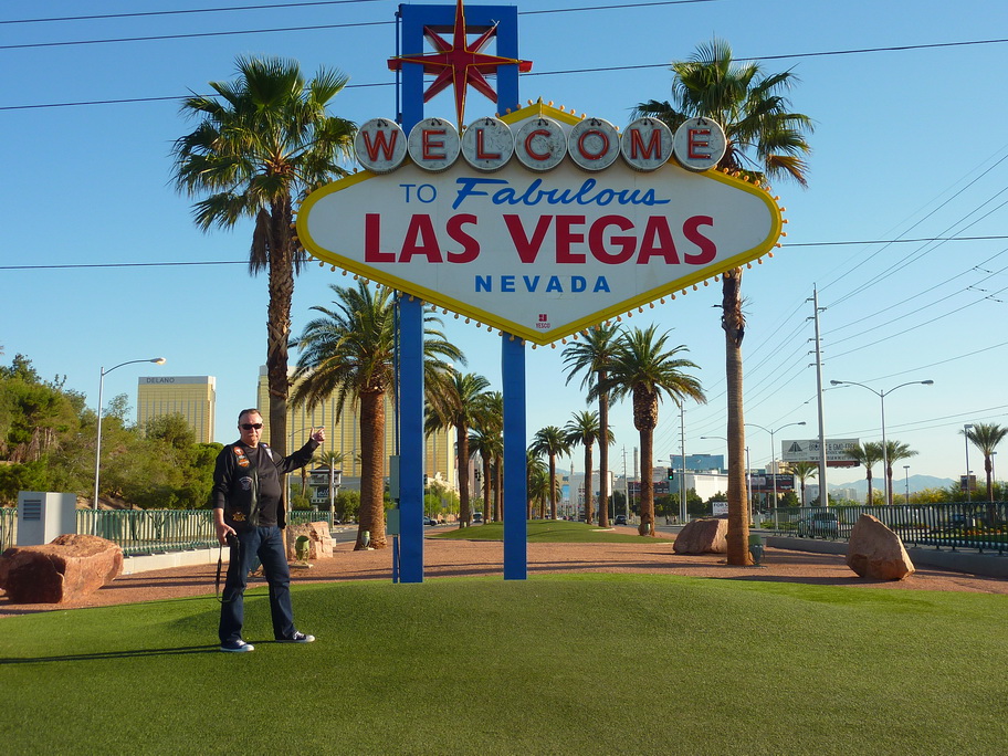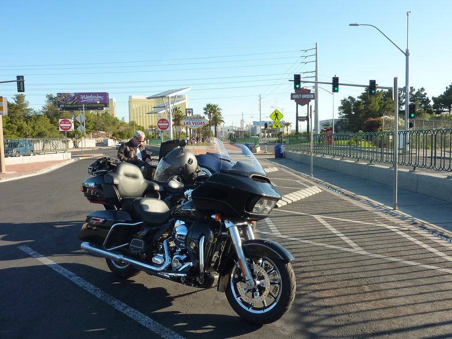 Après 5 min de roulage , on sort : Vegas la nuit en moto sur le strip, direction downtown et freemont street.