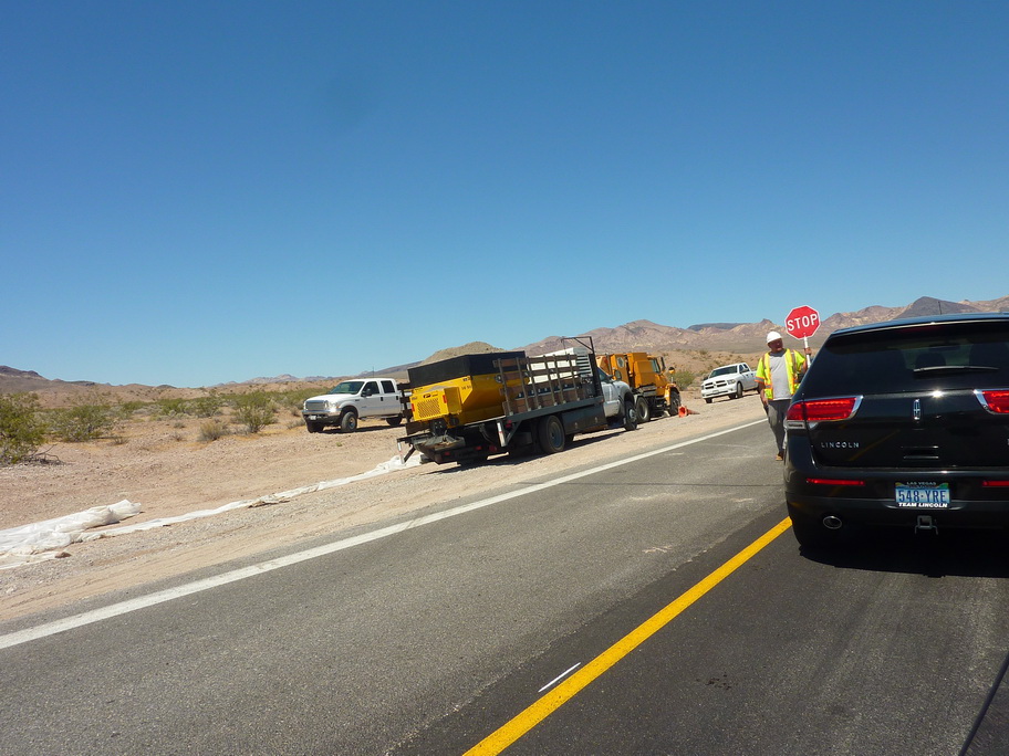 La route que j'avais prévue est fermée, on prendra donc l'option B. Un peu plus loin travaux : 15 min d'attente sous le cagnard!