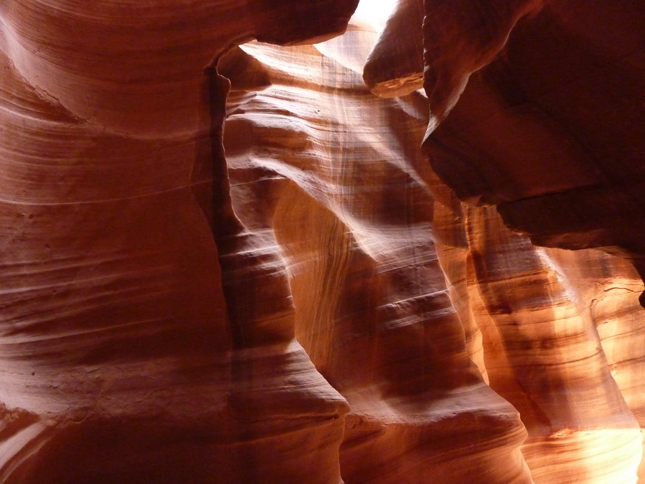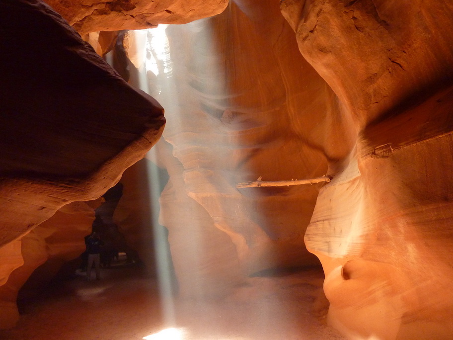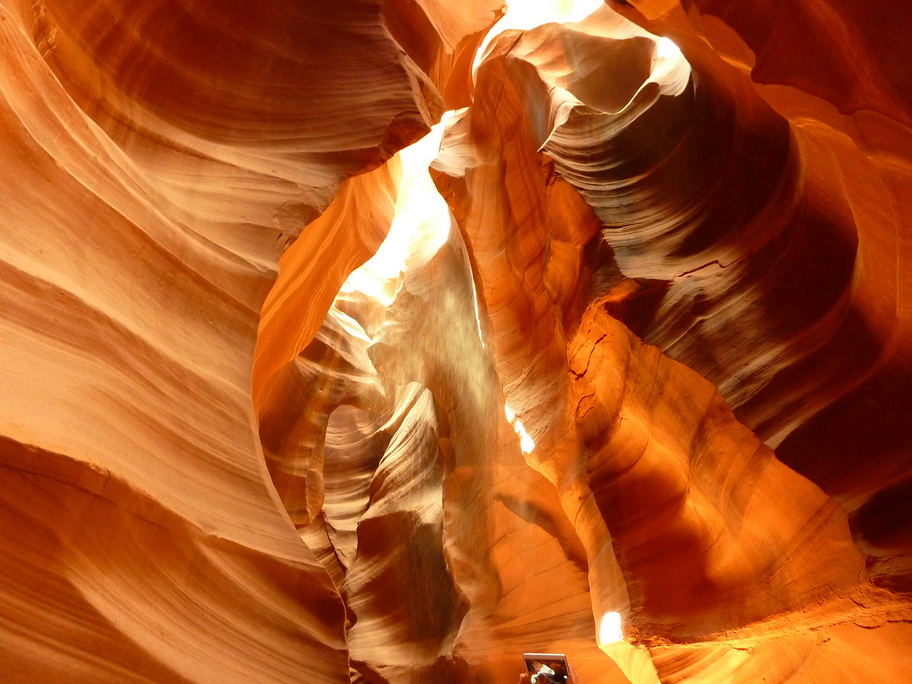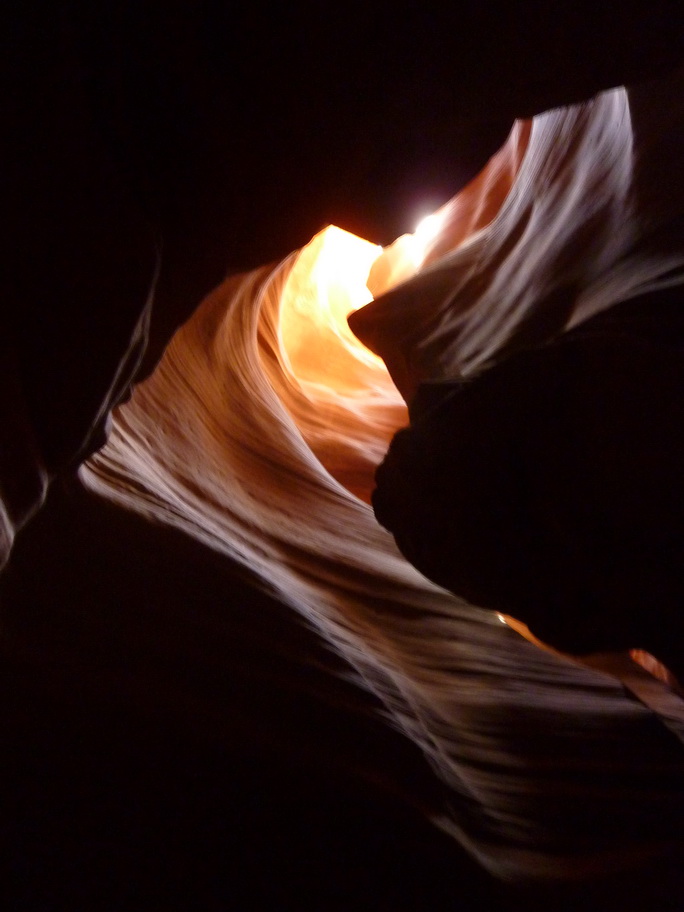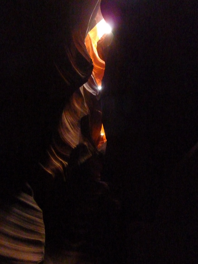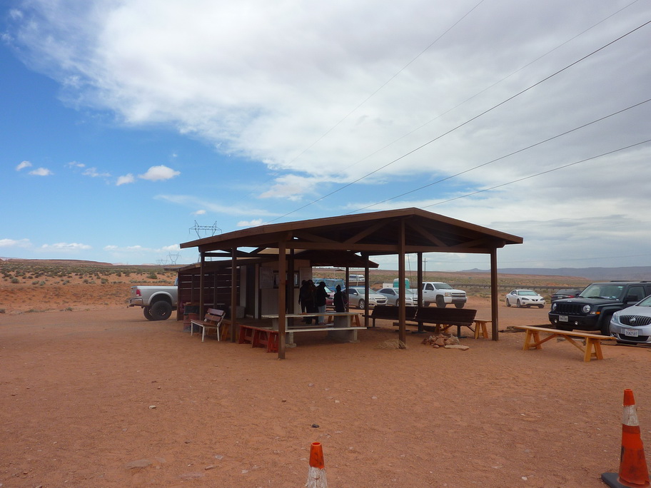 Arrivés à la réserve pour visiter Antelope canyon, le vent se lève et on voit au loin des mauvais nuages, une tempête de sable approche. Ca y est elle est là, nous mettons nos casquettes et nos foulards sur le nez.
