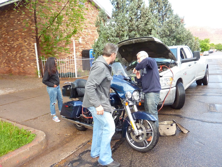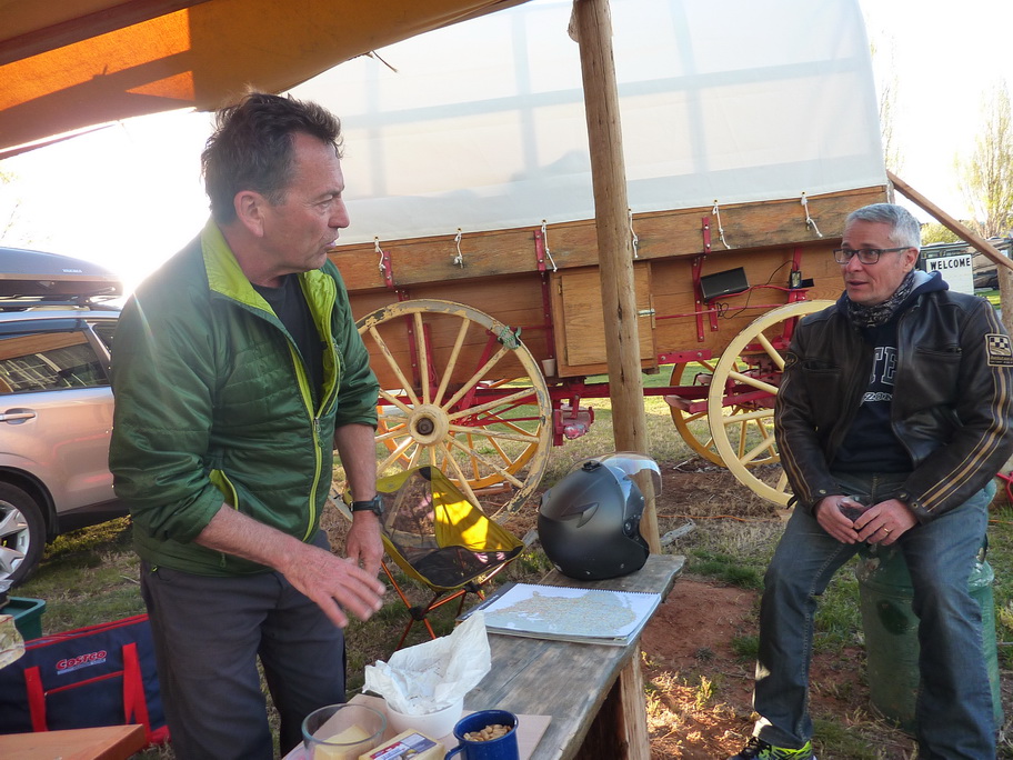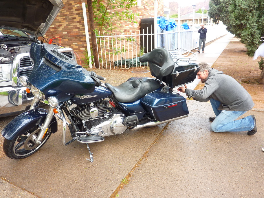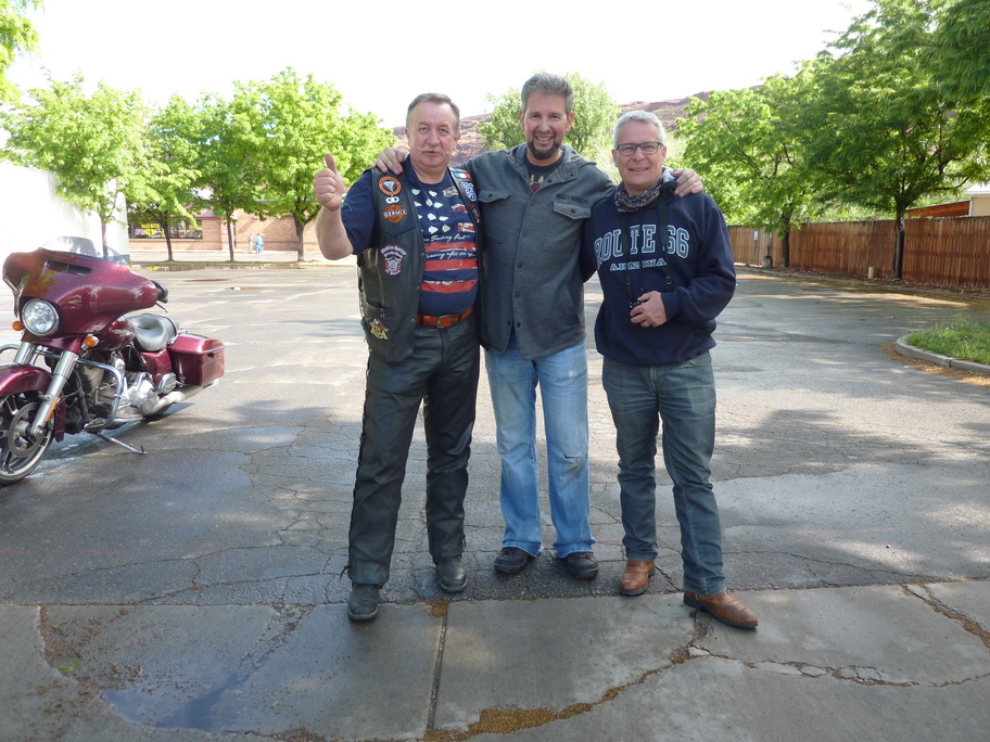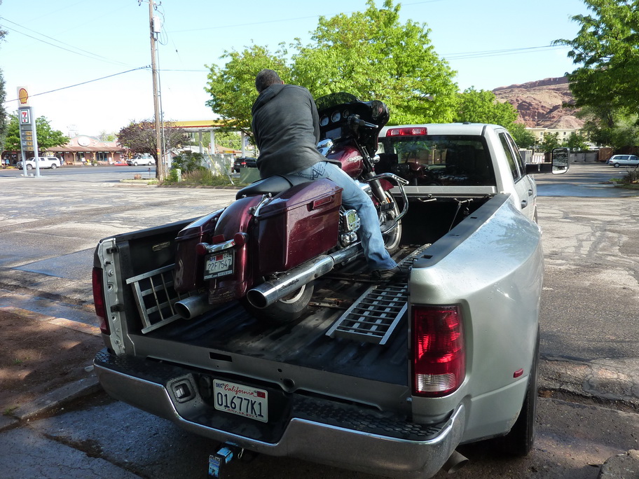 Il amène une nouvelle moto pour thierry sur son pickup depuis Los Angeles : 1260kms à faire !!! Il a roulé toute la nuit, nous le voyons arriver à 8h avec sa copine, on décide de prendre le petit déjeuner tous ensemble.
