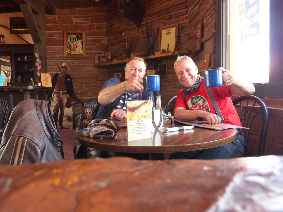 Glenn ( le loueur) nous amène en pick up de la mort qui tue vers le "jailhouse cafe" qui ne fait que ça: des petits déjeuners. On passe un super moment et le p'tit dej est super : omelette , bacon, jus d'orange, pain de mie.